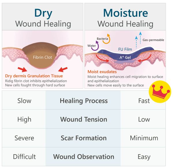 According to Dr. George Winter’s publication in Nature, keeping wounds in a moist environment can have 2 times the healing speed and better outcome than a dry environment. This laid the foundation for the treatment concept of "moisture balance".