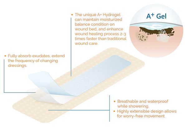 HERADERM Hydrogel Wound Dressing (Sterile) is an ultra-thin, transparent and exudate absorbent gel-based wound dressing. It is designed for plastic and general surgery. The product is unique for its triple-layer structure: The inner layer is A+ Hydrogel, which maintains a moisture balance environment on the wound. The middle layer is a unidirectional fabric that can stretch with body movements. The outer layer is waterproof PU film, which seals out water and dirt and can stay on in the shower.